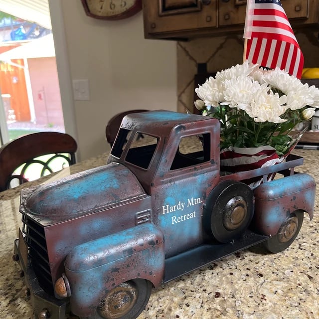 🏠Beautiful rusty rustic truck that has been airbrush painted or hand painted for the farmhouse look. Each one is unique and cannot be replicated. Some have less or more teal/blue and rust.🎁